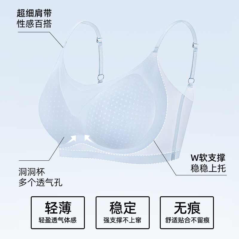 草本初色内衣女细肩带无痕夏季 大胸显小胸聚拢凉感无钢圈文胸 薄款