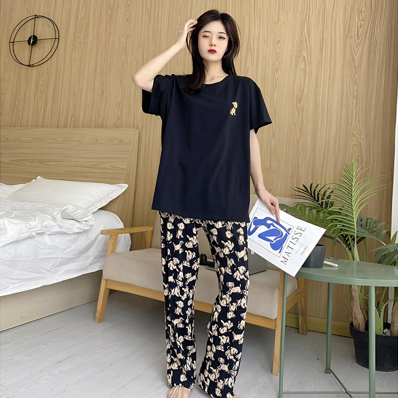 宽松休闲青年大码 芬腾情侣睡衣夏季 男士 女套装 全棉家居服 纯棉短袖