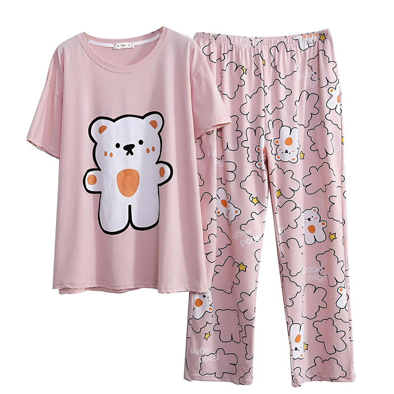 凉感可爱卡通家居服套装 睡衣女生春秋季 夏天长袖 冰丝新款 2025薄款