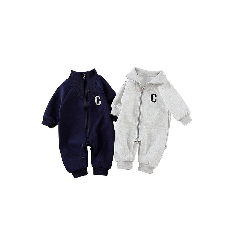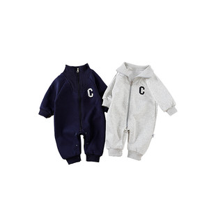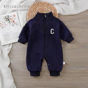 kmi新生婴儿衣服春秋满月哈衣男女宝宝春装 爬服运动风连体衣