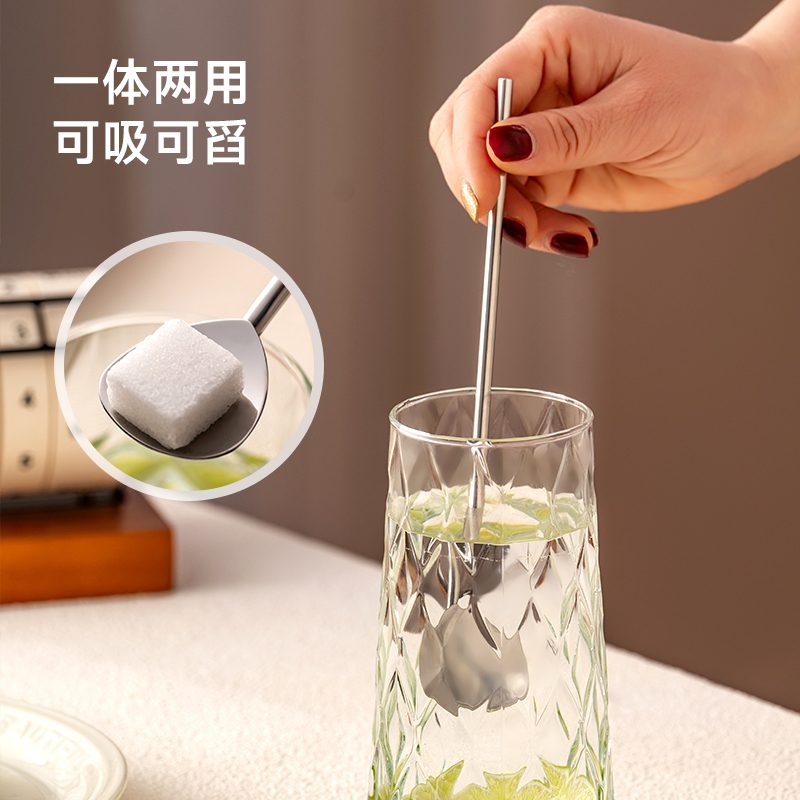 onlycook吸管勺子一体两用食品级304不锈钢咖啡奶茶饮管搅拌勺子