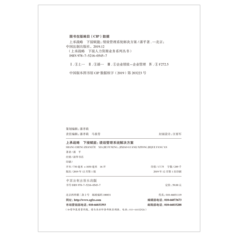 绩效管理系统解决方案 下接赋能 潘平 9787521605457 社 国图书店正版 中国法制出版 上承战略