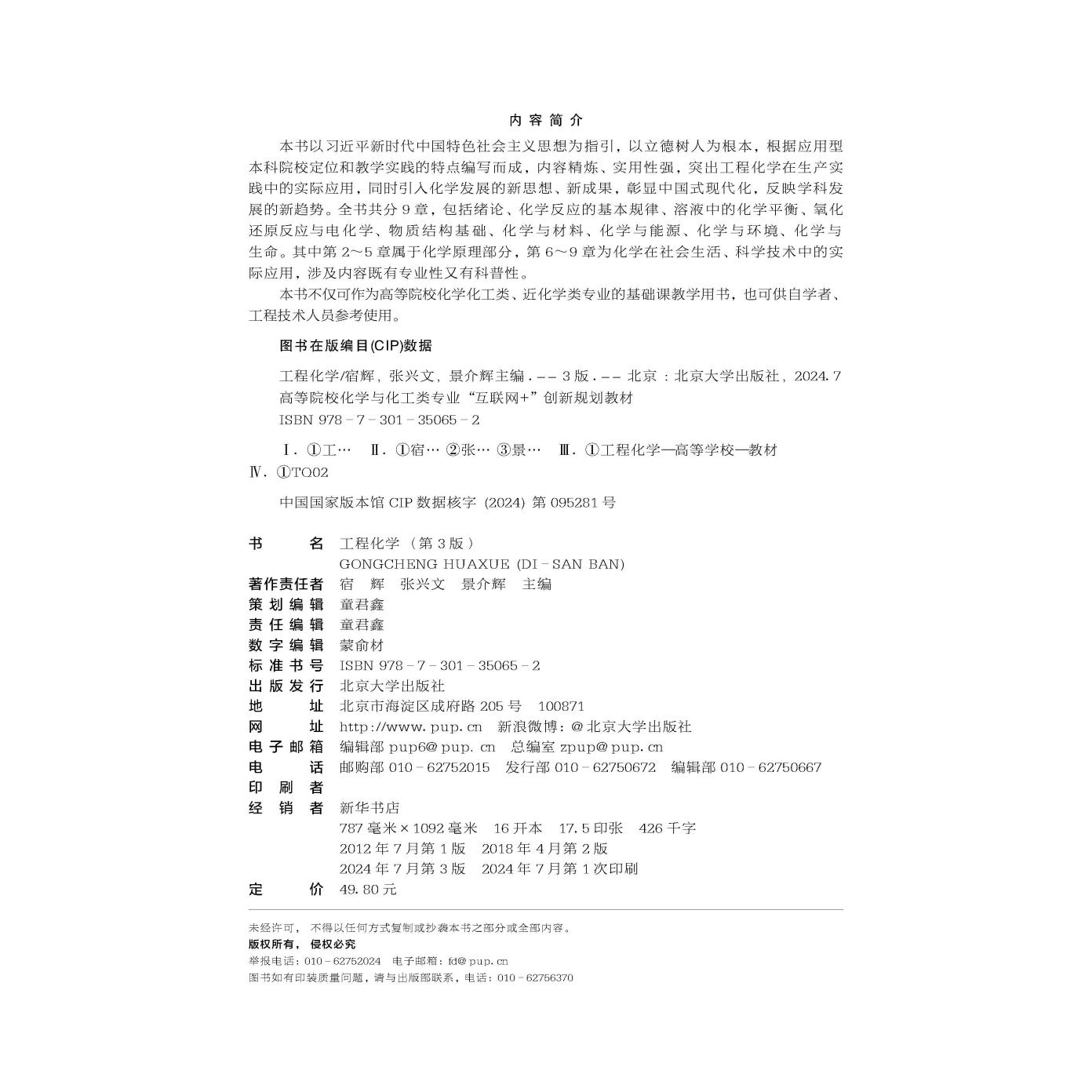 张兴文 9787301350652 高等院校化学与化工类专业 社 北京大学出版 景介辉 宿辉 创新规划教材 互联网 第3版 工程化学