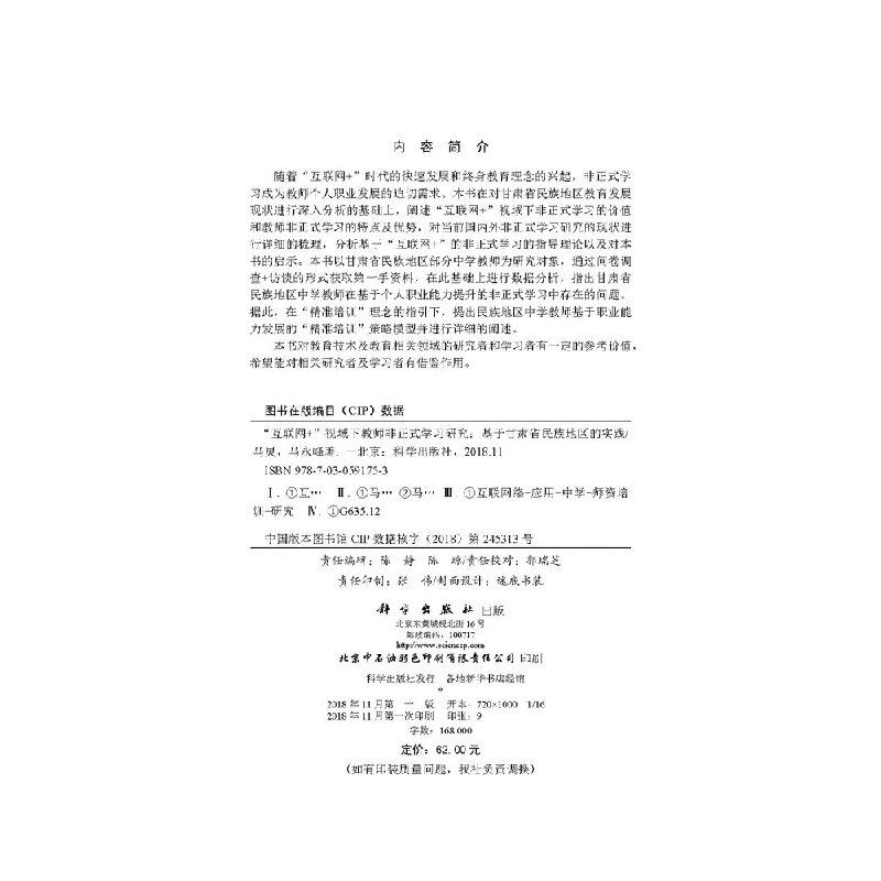 学习研究 ——基于甘肃省民族地区 科学出版 互联网 社 马永峰 视域下教师非正式 马炅 全新正版 实践
