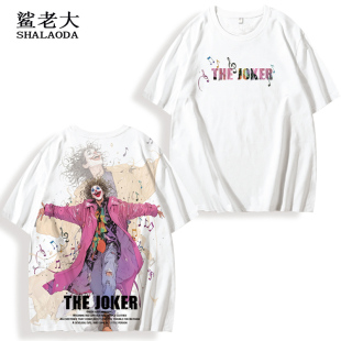 加肥新款 大码 体恤百搭上衣 T恤男小丑印花潮流圆领半袖 ins潮牌短袖