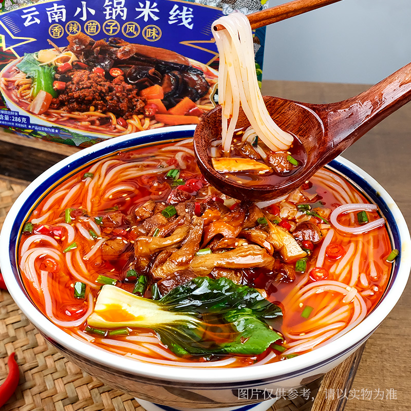 香辣菌子米线早餐宵夜推荐 品七彩 藤椒牛肉 松茸鸡汤 云南米线
