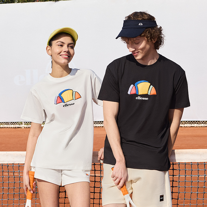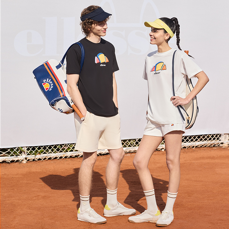 ellesse小贝壳网球运动短袖 男女秋冬抗菌凉感印花情侣T恤上衣宽松