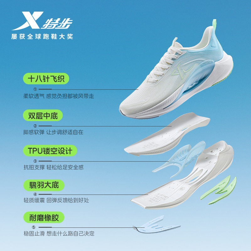 跑鞋 女鞋 男鞋 秋冬减震网面舒适运动鞋 黑色专业跑步鞋 特步氢风7