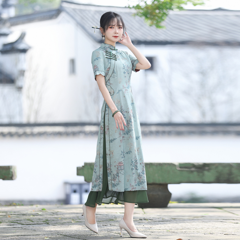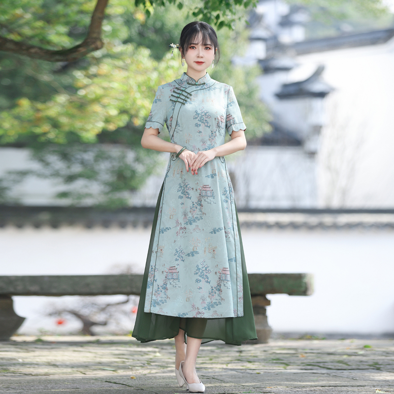 t恤女旗袍连衣裙法式 新中式 小众设计感短袖 夏季 一裙一衣潮 情侣装