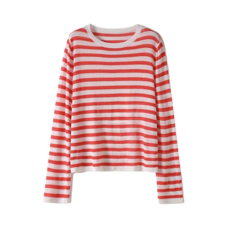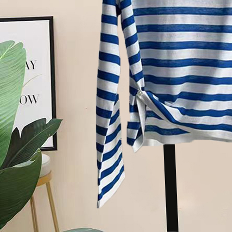 防晒衫 圆领长袖 T恤上衣女 慵懒清爽透气蓝白条纹薄款 海岸线针织衫