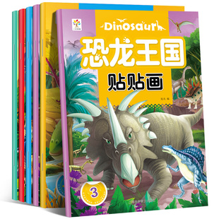 6岁卡通益智全脑开发趣味贴贴画幼儿园宝宝卡通奇趣世界专注力训练粘贴画早教启蒙书籍 恐龙王国贴贴画全套6册儿童恐龙贴纸书2