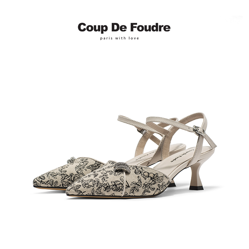 半包单鞋 CDF女鞋 中跟包头凉鞋 复古带钻新中式 优雅一字带 轻奢夏季