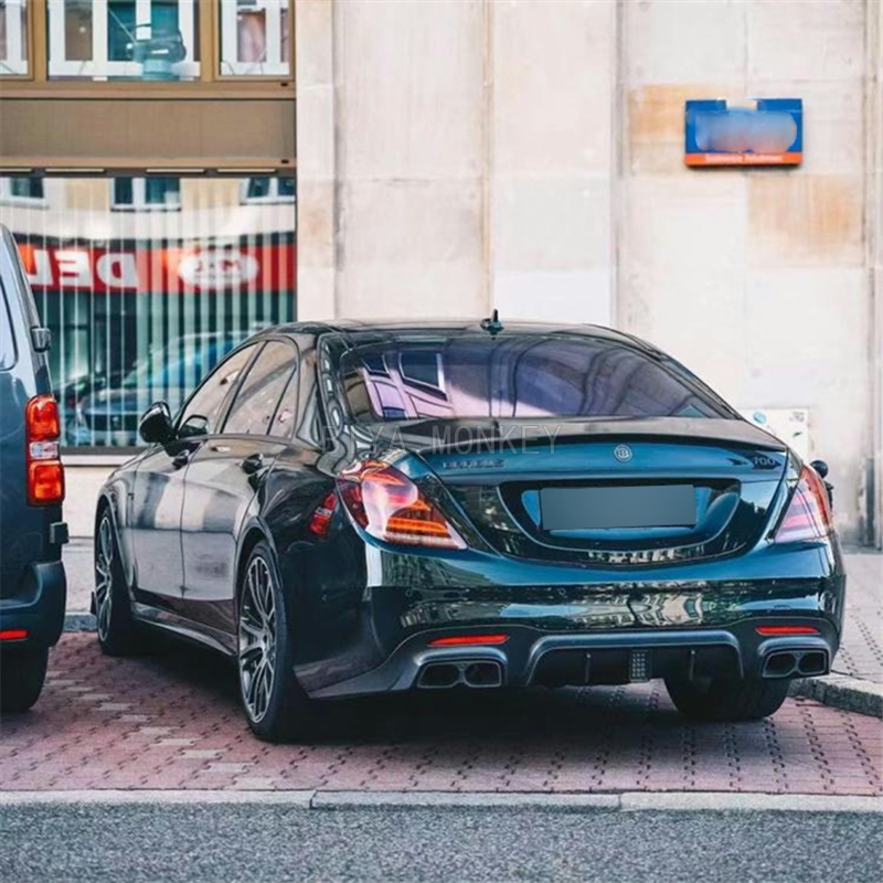 适用奔驰S级W222改装 小包围碳纤维锻造纹后唇W222尾唇尾喉支架
