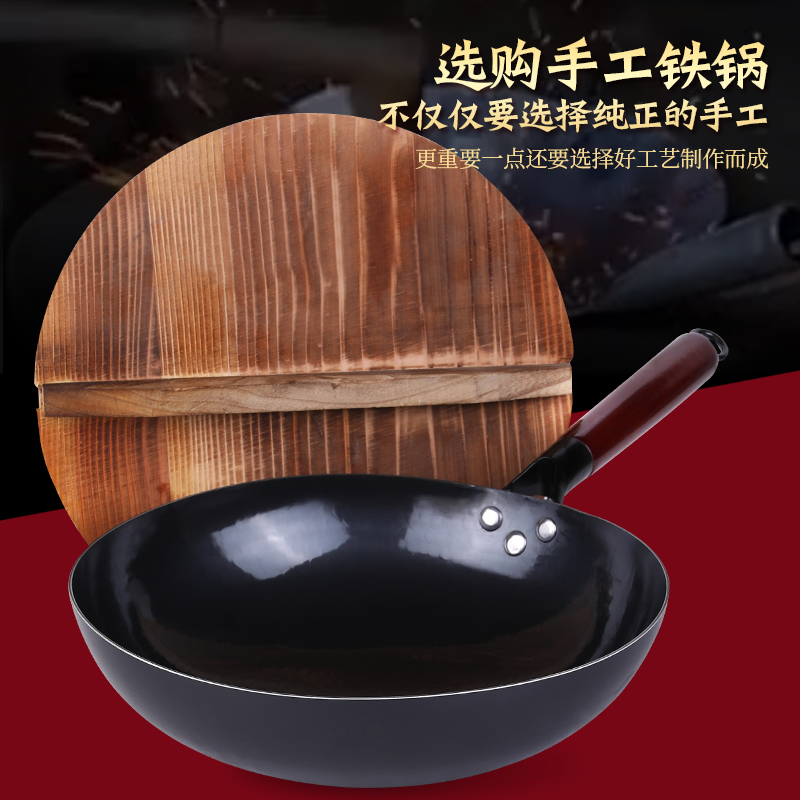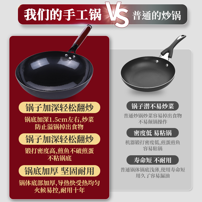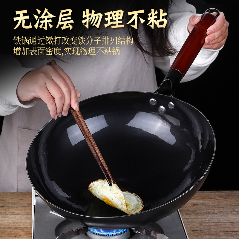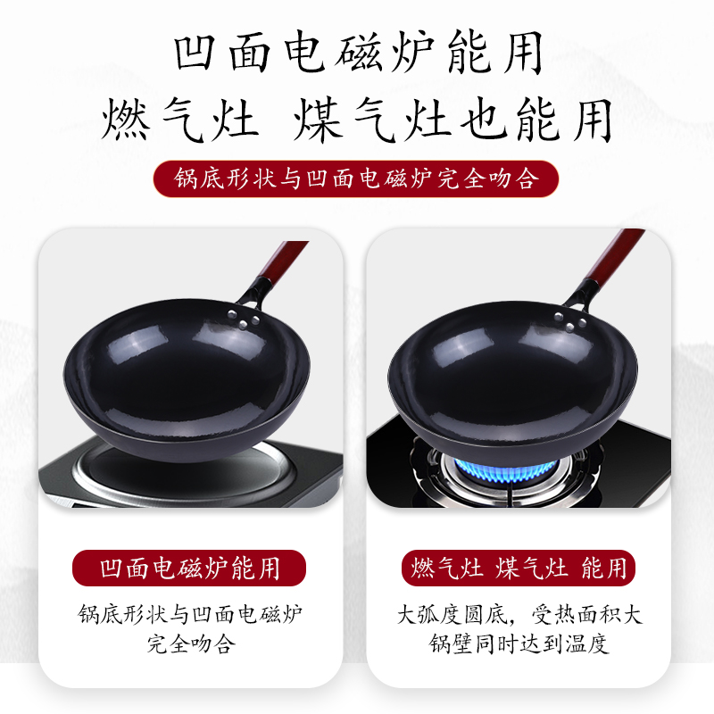 章丘炒菜铁锅官方旗舰店正品 无涂层不粘锅家用燃气凹面电磁炉专用