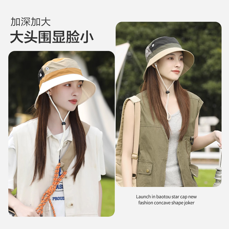 户外登山帽女大头围露营徒步速干防水防晒帽遮阳夏季 男 渔夫帽大码