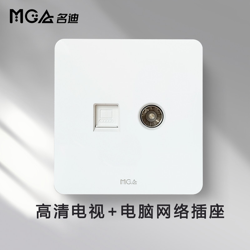 名迪墙壁有线电视电脑插座网络面板光纤网线二合一tv闭路网线插座