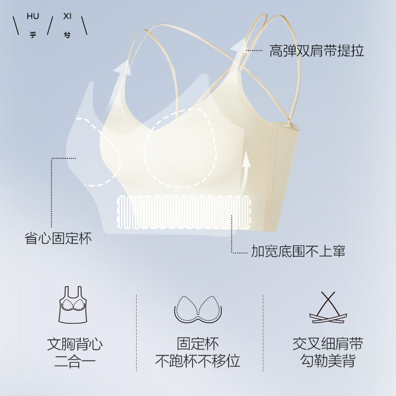 乎兮交叉美背细肩带胸垫一体聚拢内衣文胸罩夏季 冰丝无痕薄吊带女
