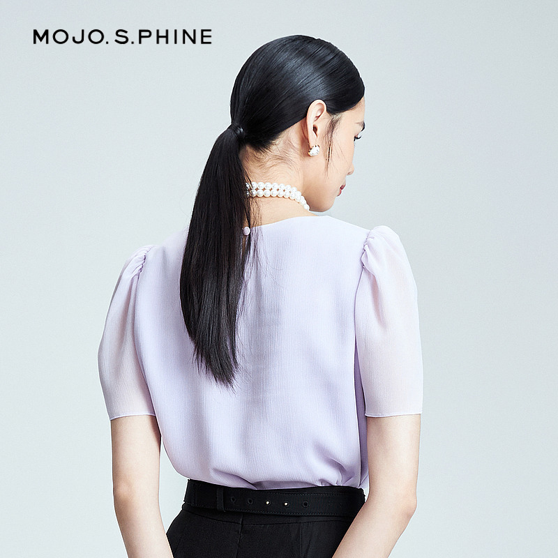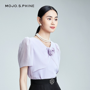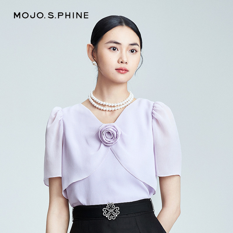 时尚 2024年新款 雪纺休闲百搭衬衣 精致洋桔梗衬衫 MOJO莫佐浪漫法式