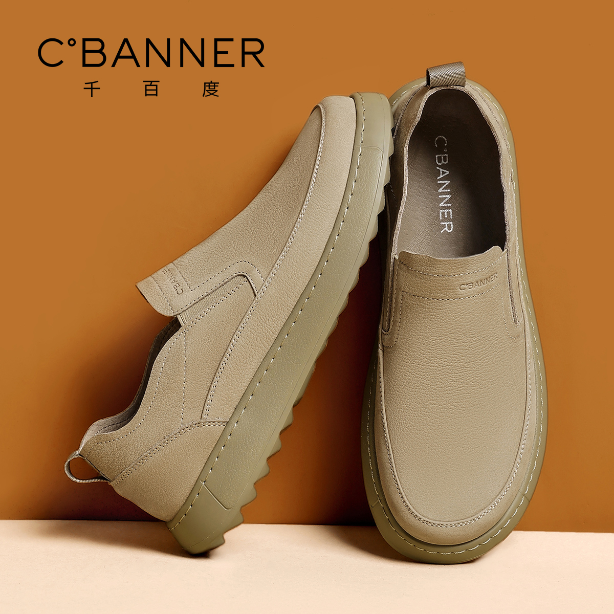 一脚蹬休闲皮鞋 2025新款 千百度男鞋 轻便透气豆豆鞋 头层牛皮