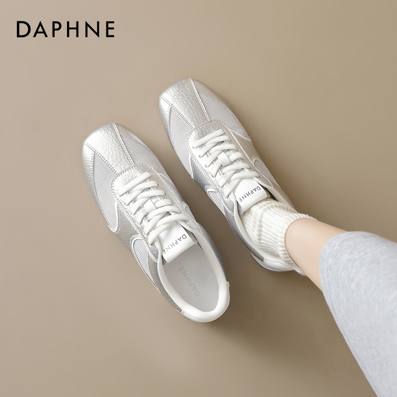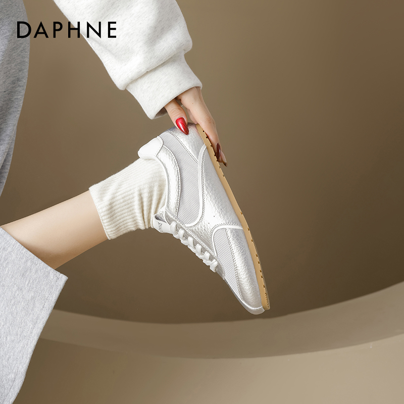 休闲轻便平底低帮运动小白鞋 2025新款 女春季 达芙妮银色芭蕾德训鞋