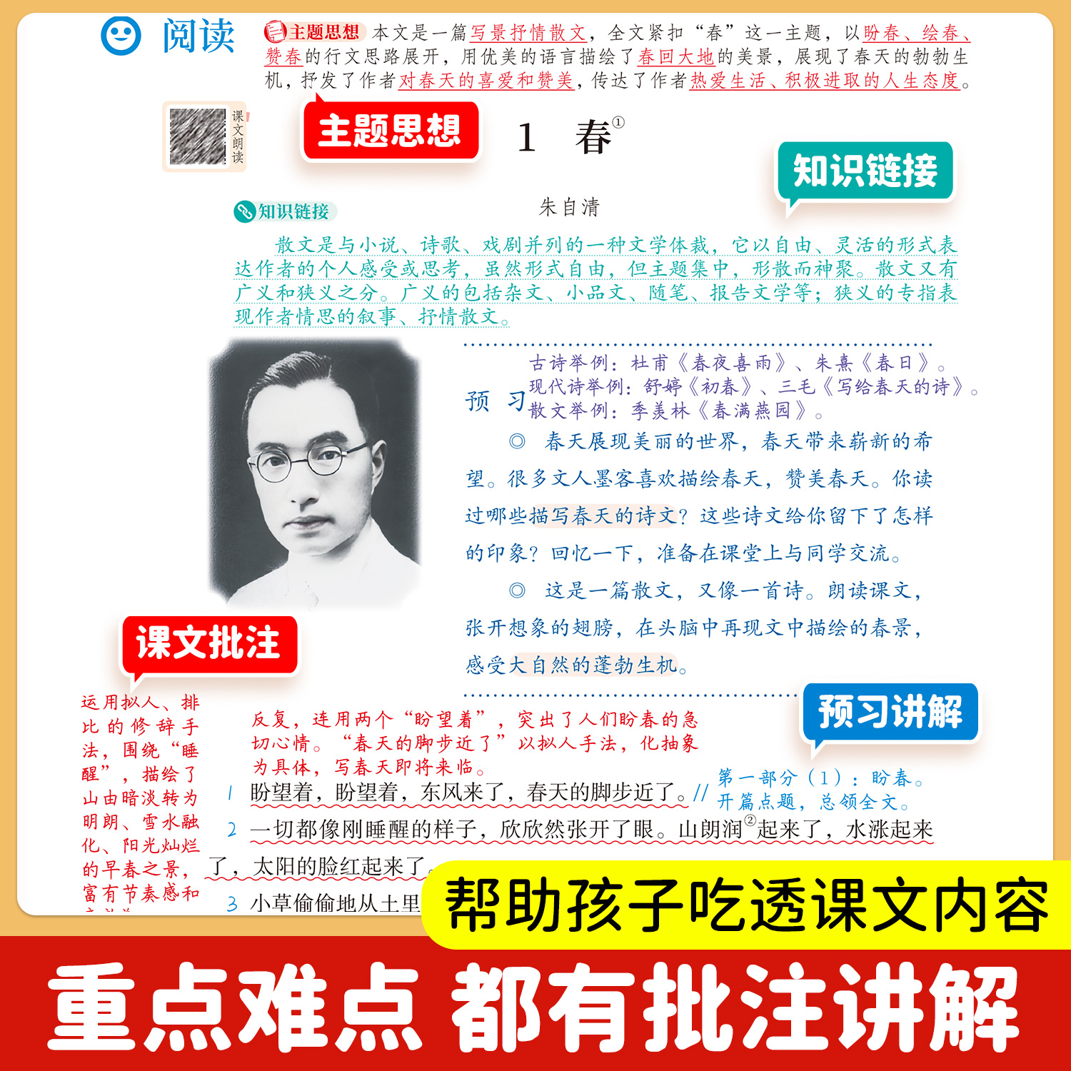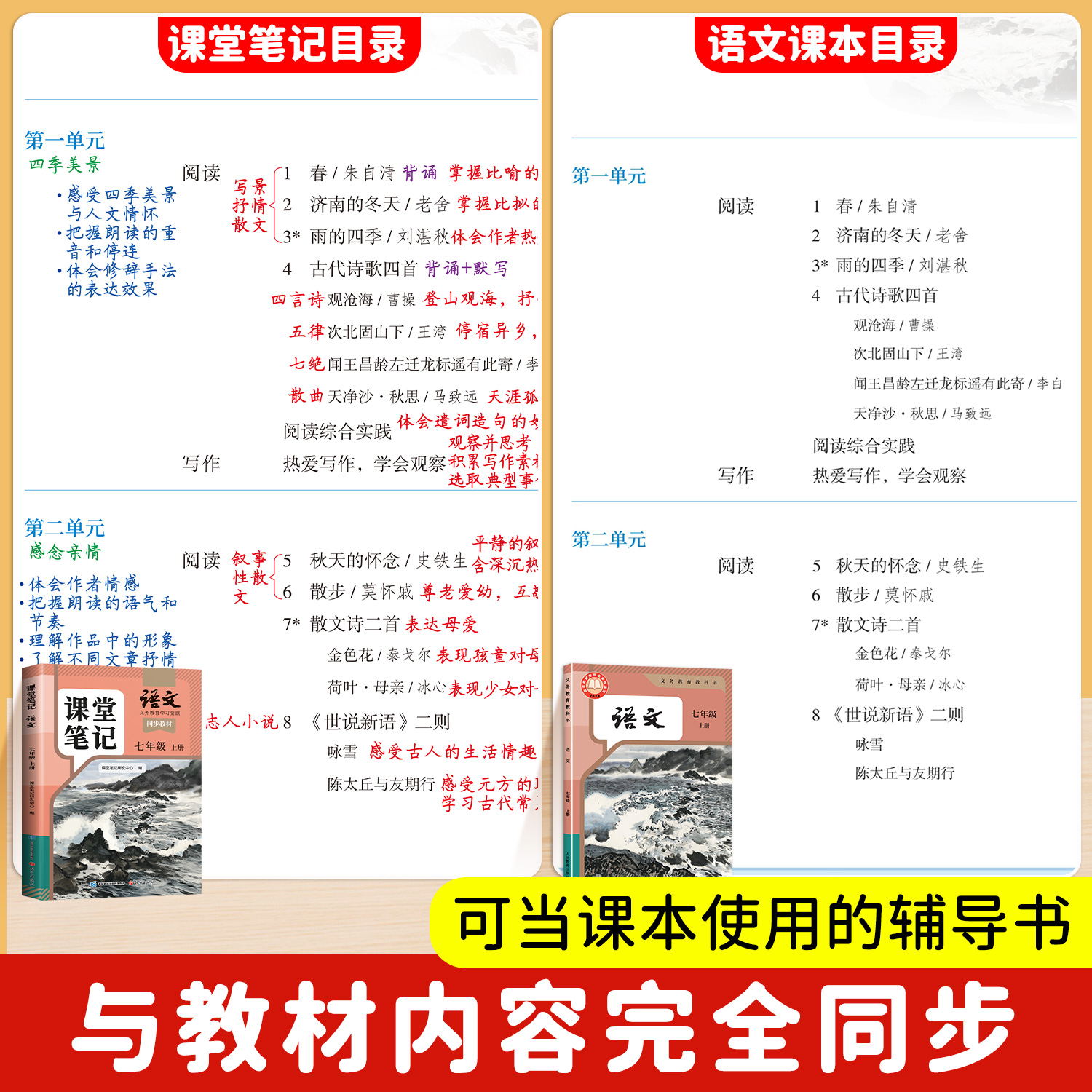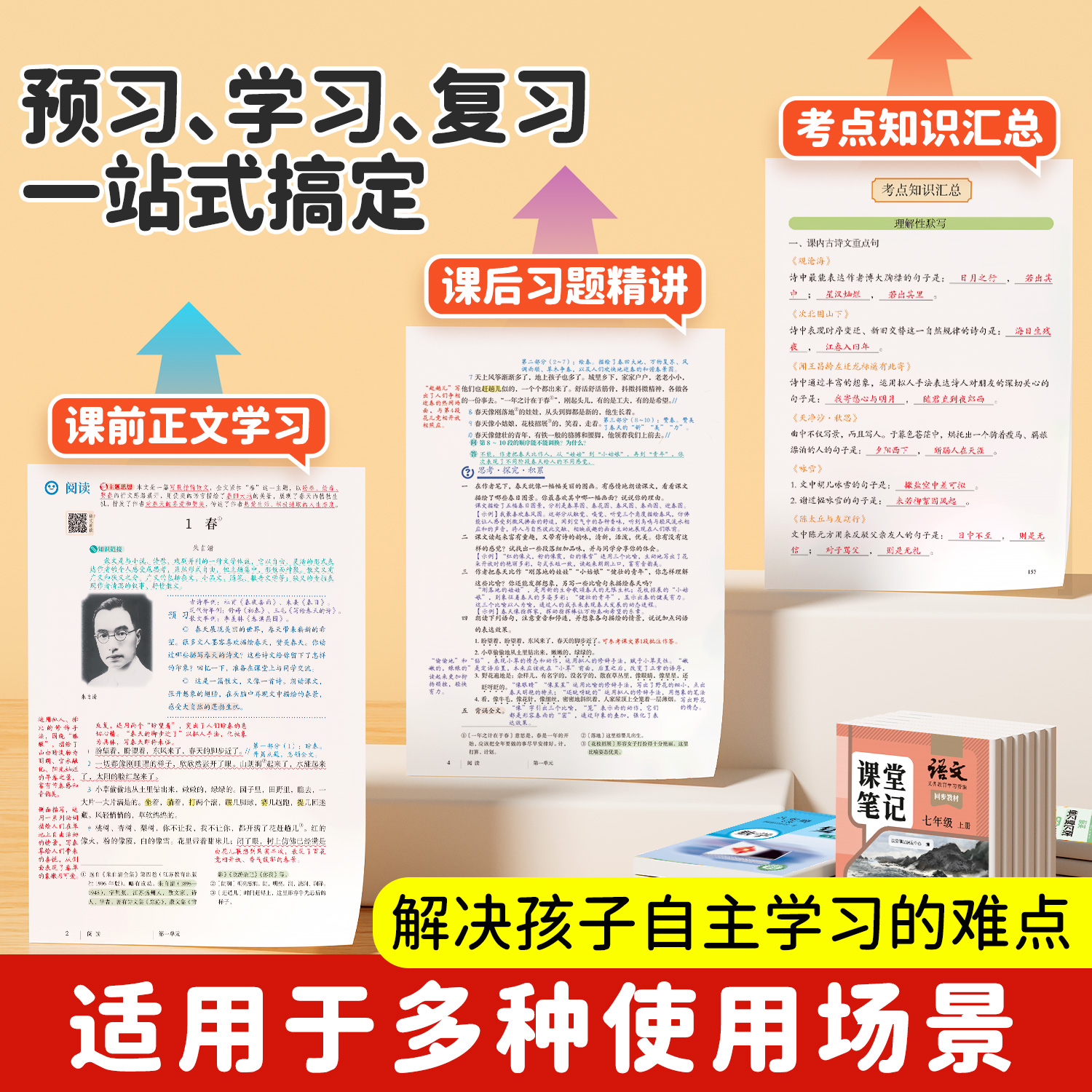 2025新版 七上初一新教材全套下册预习教辅同步课本新教材辅导书材料7年级中学学霸随堂笔记解读全解 七年级上册语文课堂笔记人教版