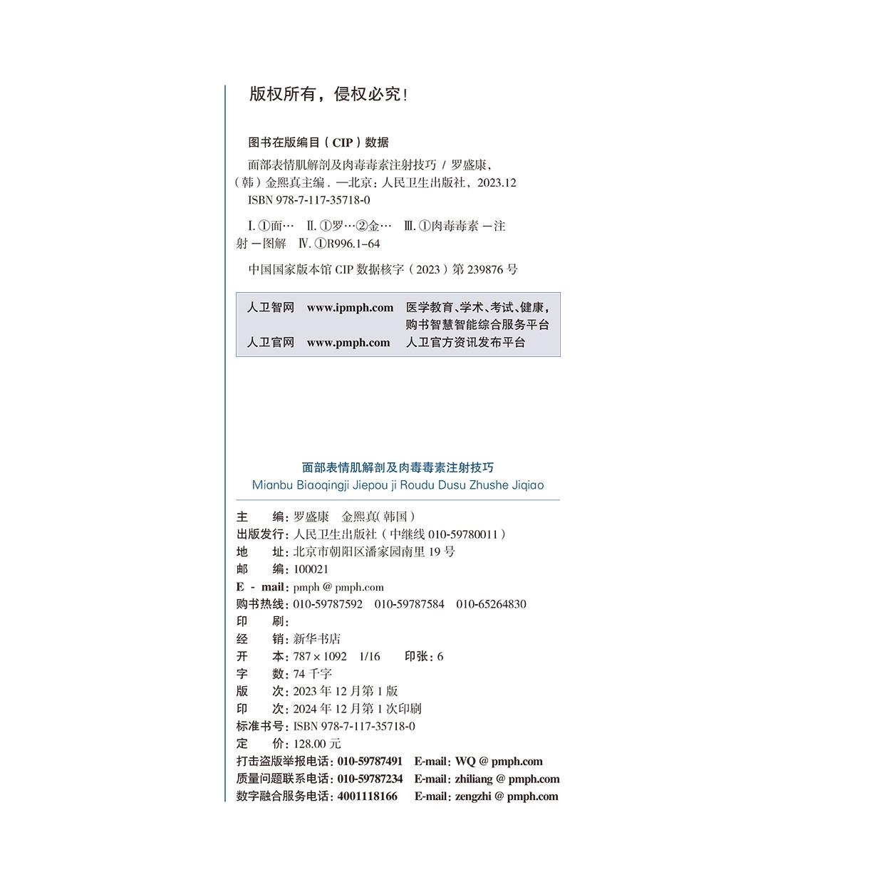 金熙真编 罗盛康 额肌解剖 眉间复合体解剖 社 面部表情肌解剖及肉毒毒素注射技巧 提上唇鼻翼肌9787117357180人民卫生出版 附视频