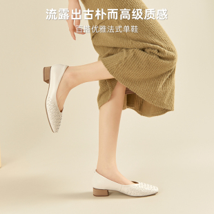 仙女风瓢鞋 秋季 浅口百搭中跟奶奶鞋 大码 真皮单鞋 女鞋 粗跟2025新款
