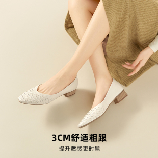 大女主 婚鞋 百思图25秋新款 尖头女浅口单鞋 裸色高跟鞋 双11预售