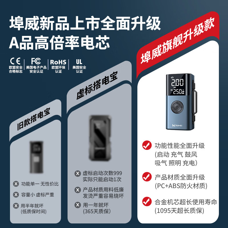 埠威汽车应急启动电源充气泵一体机12V搭电宝电瓶强启打火QS213