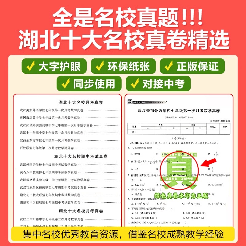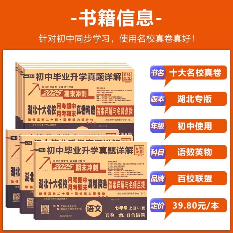 2025湖北十大名校重点月考期中期末冲刺真卷精选七八年级上册语文数学英语物理人教版 初一二武汉初中毕业升学真题详解试卷百校联盟