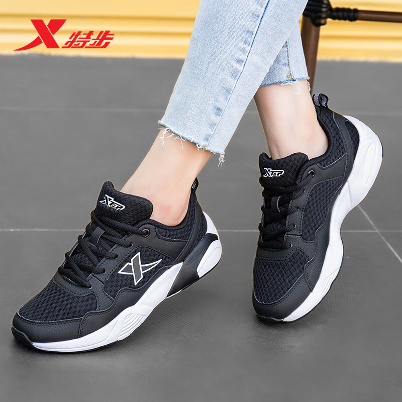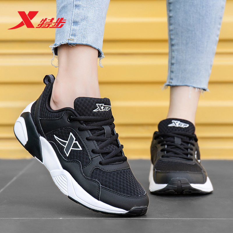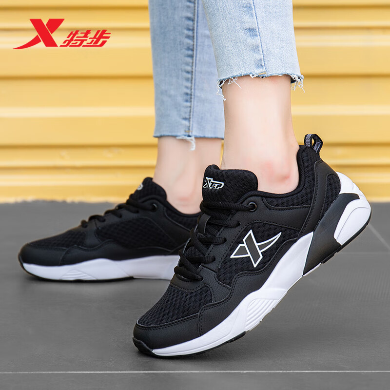 运动鞋 子女旅游鞋 秋冬新款 轻便透气休闲鞋 黑色减震跑步鞋 特步女鞋