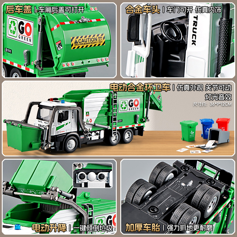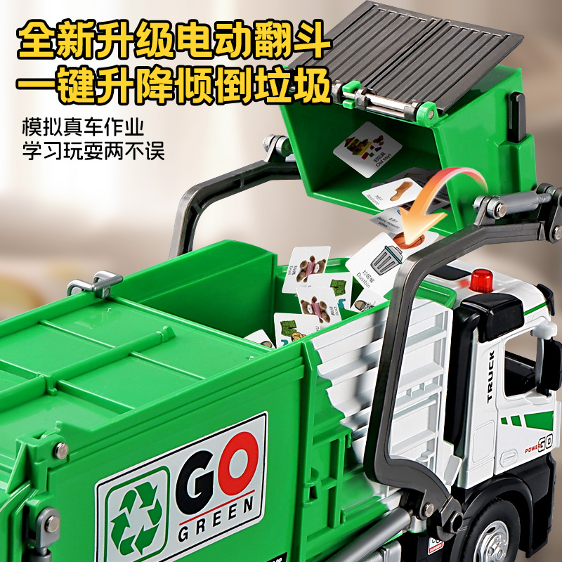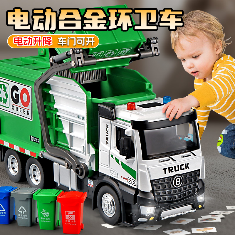 超大号合金电动垃圾车模型仿真儿童环卫工程车城市道路清扫车玩具