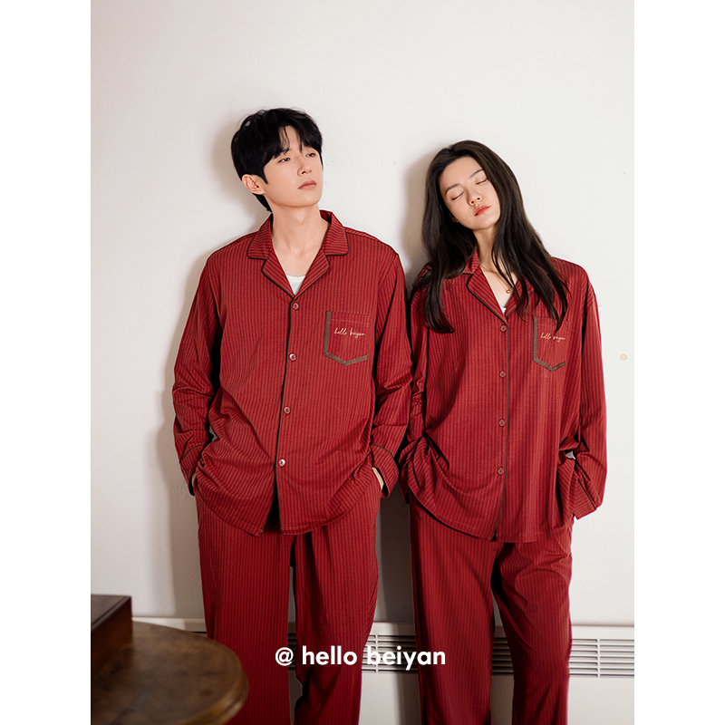 男士 套装 本命年红色家居服 柔软棉长袖 贝妍新婚情侣睡衣女春秋新款