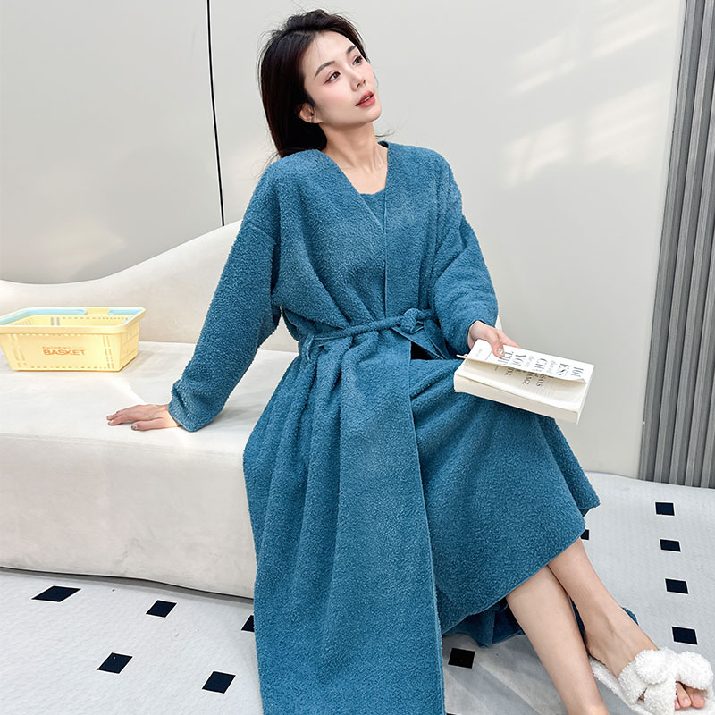 长款 女胖mm秋冬宽松背心睡裙睡衣两件套200斤 珊瑚绒保暖睡袍大码