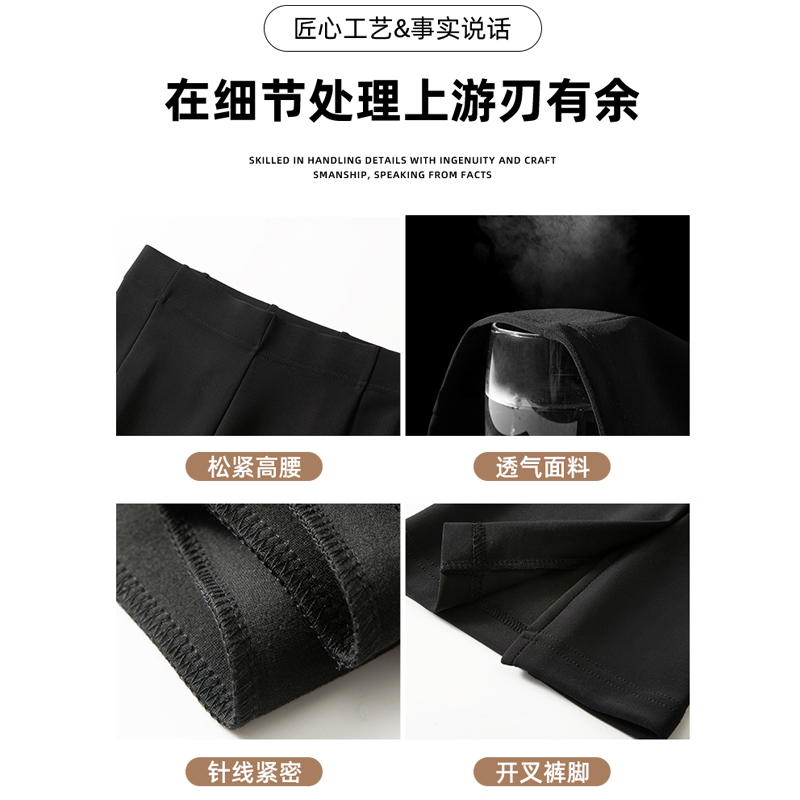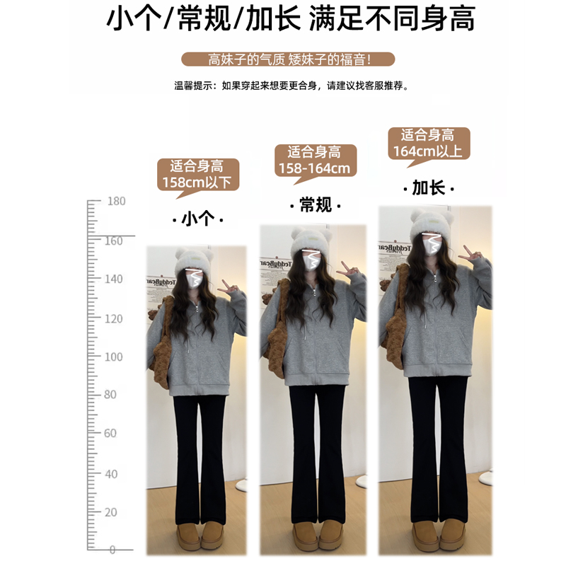 高腰显瘦垂感小个子开叉休闲加绒喇叭裤 女春秋冬季 裤 黑色微喇西装