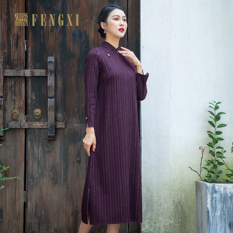 菲梦伊原创钉珠提花连衣裙女秋季 国风高端气质贵妇旗袍裙子 新中式