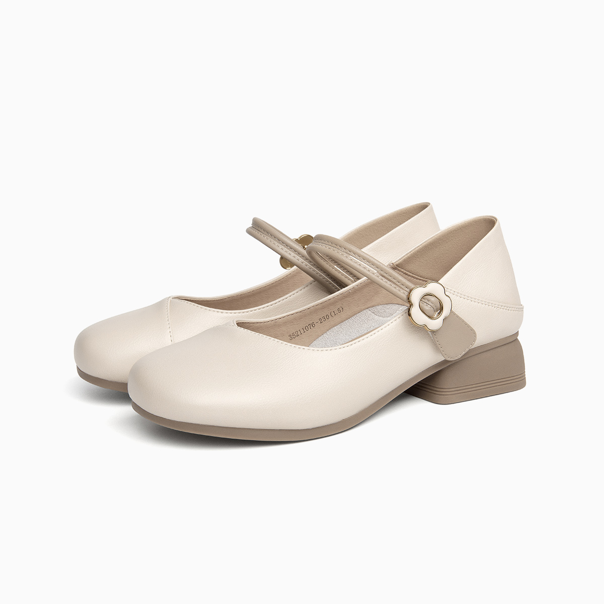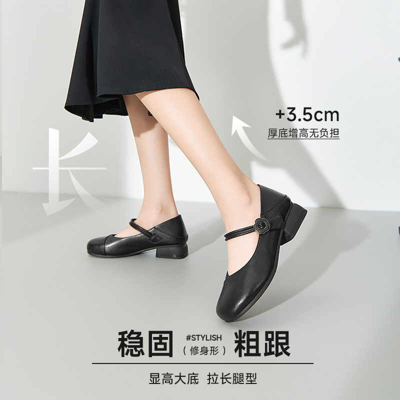 真皮浅口单鞋 新款 子E1T1DCQ5预 女2025秋季 百丽复古粗高跟玛丽珍鞋
