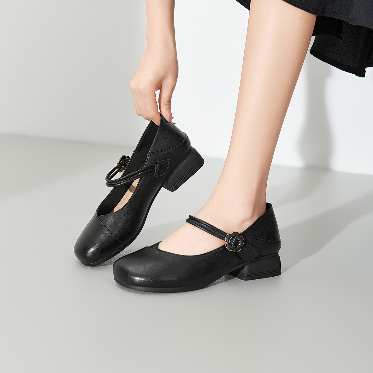 低跟配旗袍鞋 女温柔晚晚鞋 妈妈鞋 皮鞋 超软新中式 单鞋 国风玛丽珍鞋