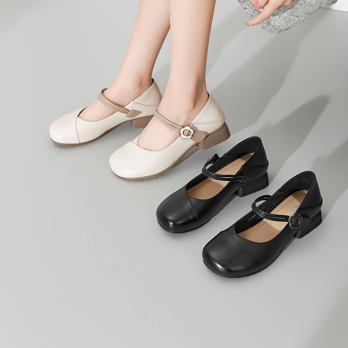 休闲低跟小跟豆豆乐福鞋 真皮鞋 玛丽珍鞋 透气皮鞋 子女2025春秋新款