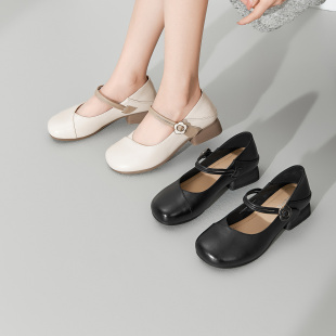 鞋 玛丽珍小皮鞋 法式 新款 子中跟圆头 黑色百搭日系厚底女2025夏季