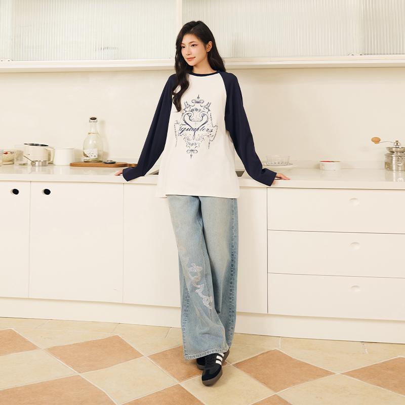 银泰百货 女士撞色蛇年限定l烫钻插肩长袖 301355 Quarters Three
