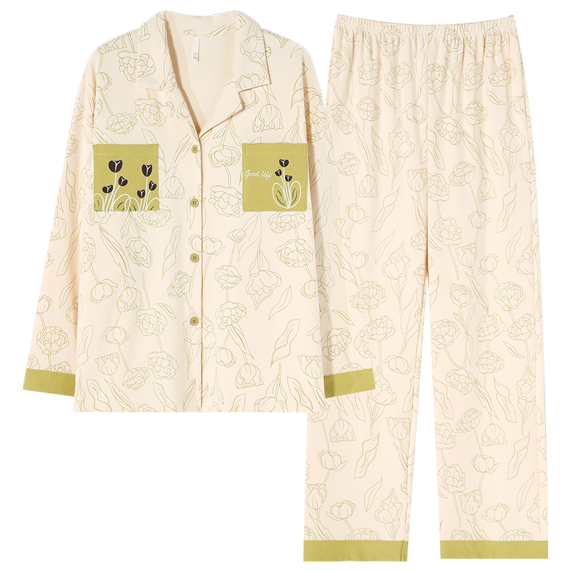 大码 2025年新款 可外穿家居服 套装 猫人纯棉睡衣女带胸垫春秋冬长袖