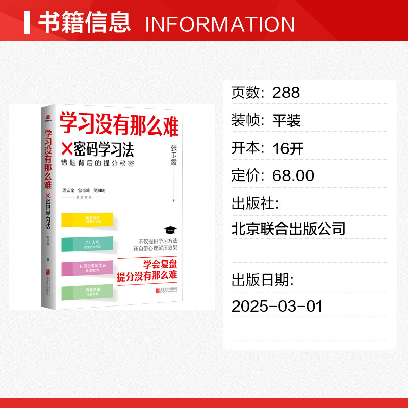 张玉霞 著 北京联合出版 ×密码 公司 图书籍 学习法 新华书店正版 学习没有那么难 家庭教育文教
