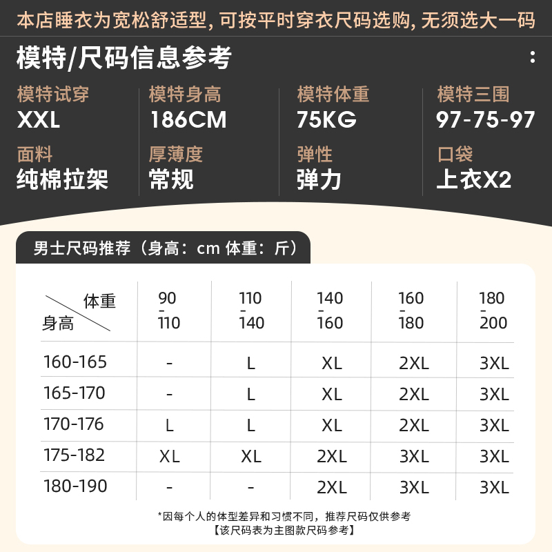 睡衣男春秋季 可外穿家居服秋冬薄款 纯棉长袖 套装 大码 25年新款