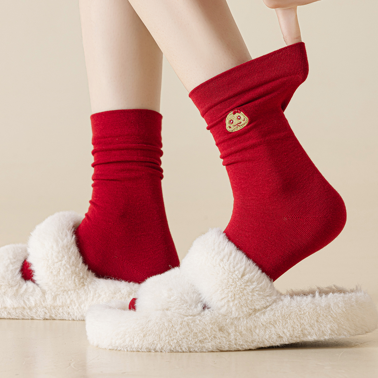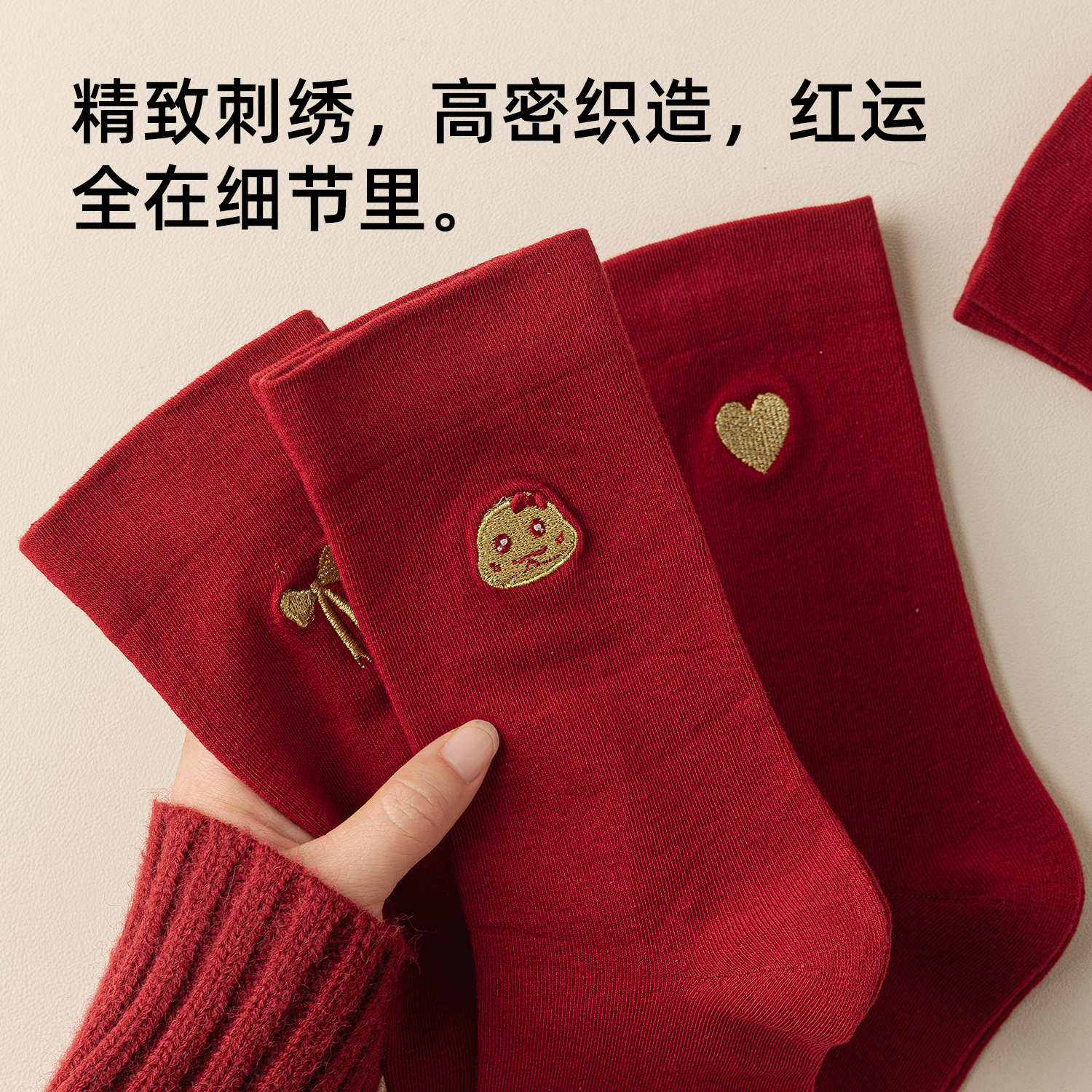 本命年袜子女秋冬季 长袜刺绣结婚喜庆好运2025蛇年新年冬天中筒袜