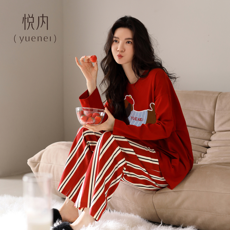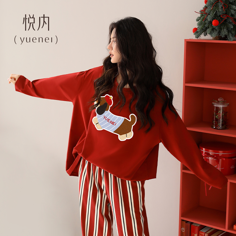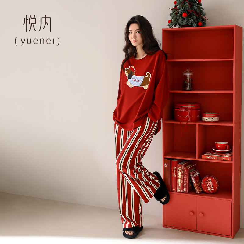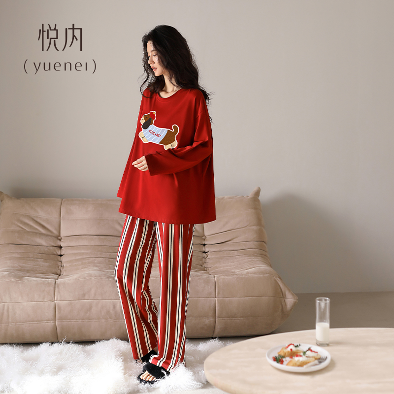 秋冬季 ubras纯棉家居服女士情侣睡衣套装 可外穿100%棉布料男女款