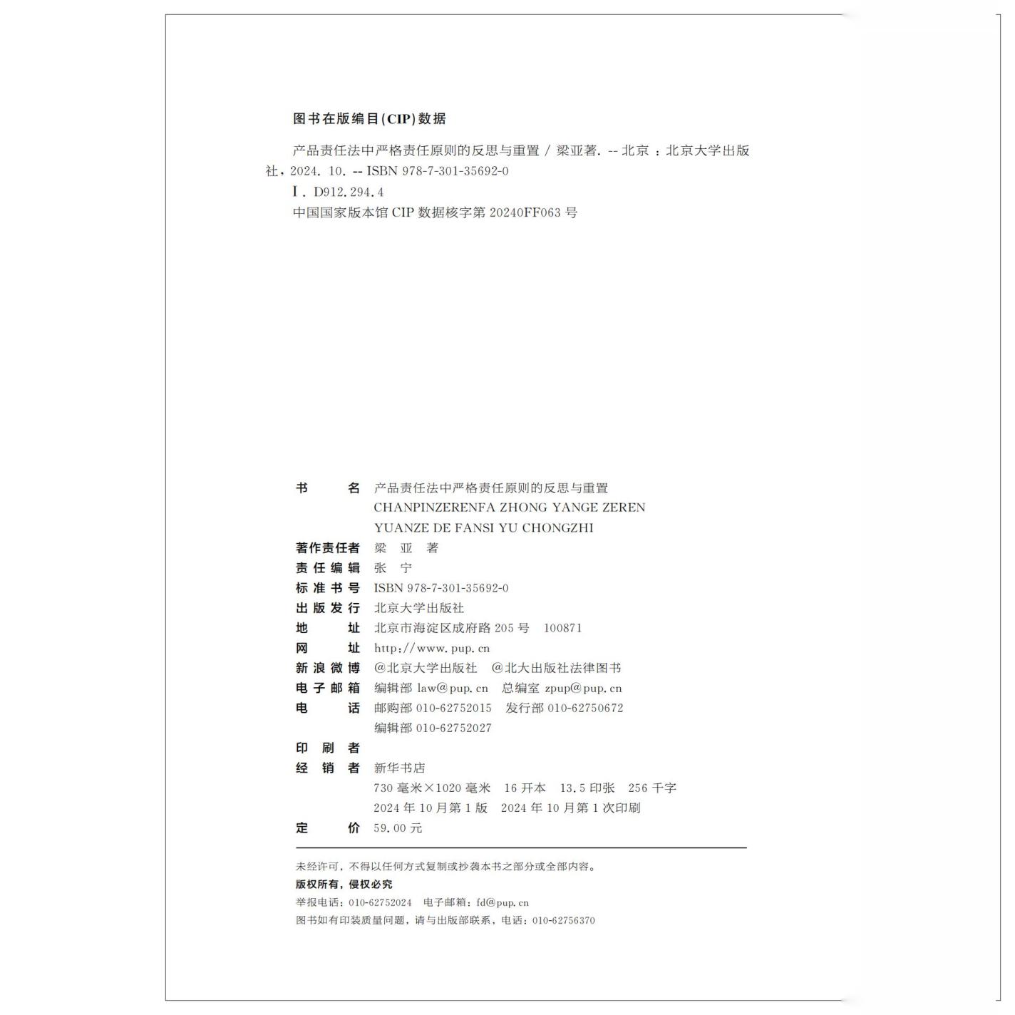 反思与重置 社 国家社科基金后期资助项目 北京大学出版 9787301356920 梁亚 产品责任法中严格责任原则