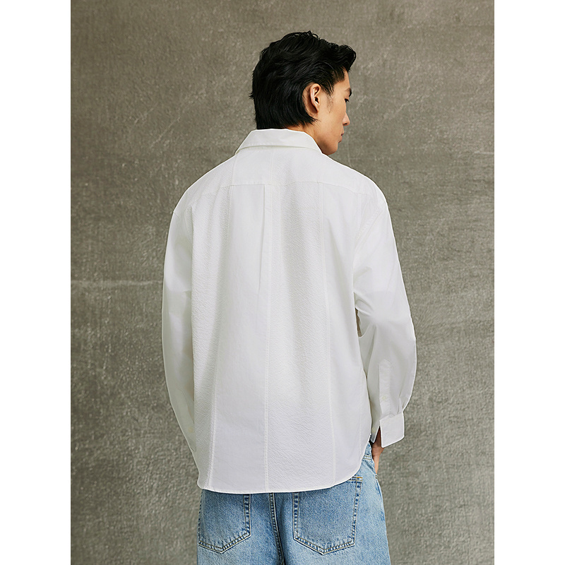 商场同款 新品 白色拼接设计翻领长袖 25春季 G25X031005 衬衫 GXG男装