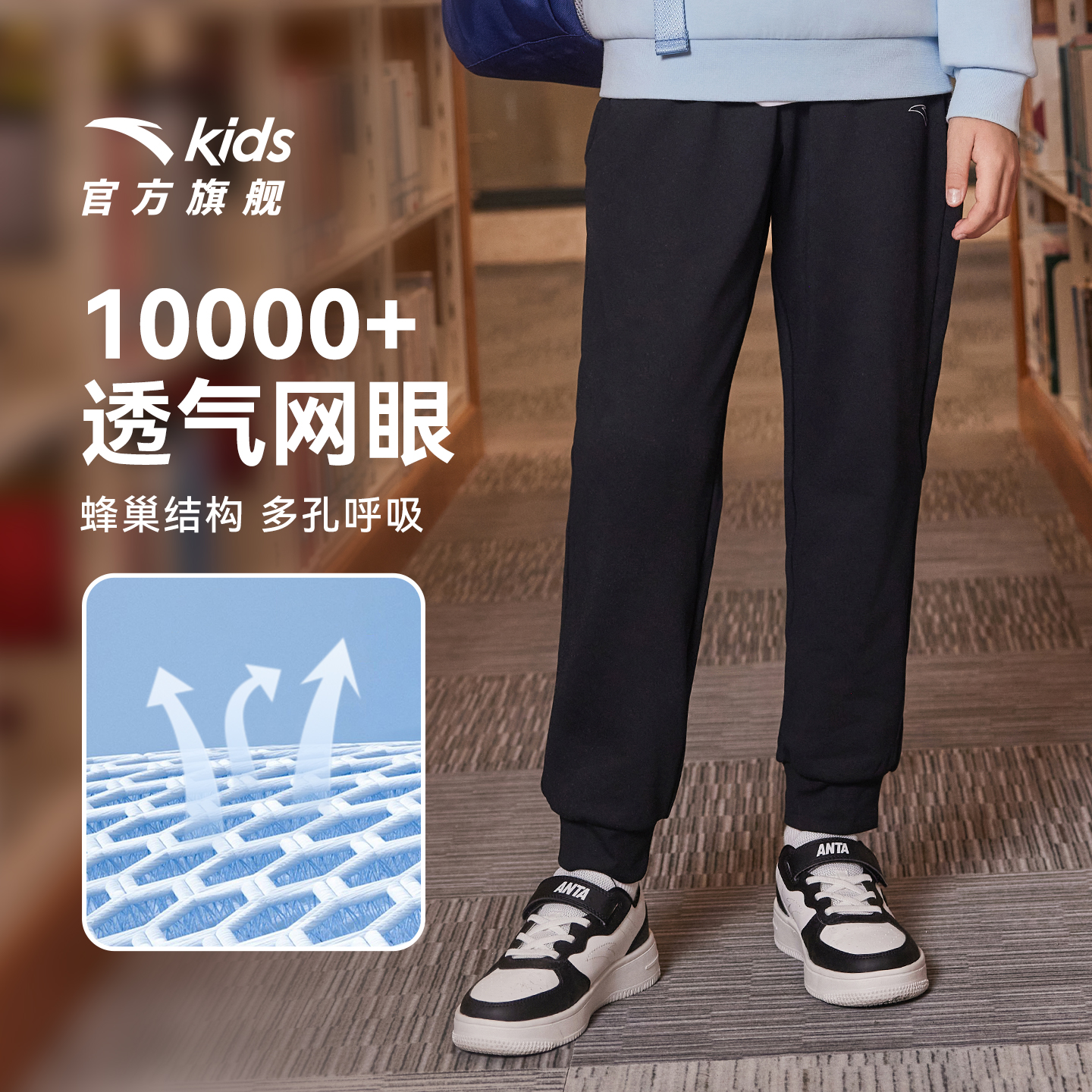 宽松直筒阔腿运动裤 新款 子 女秋季 藏青色苹果刺绣高腰抽绳休闲卫裤