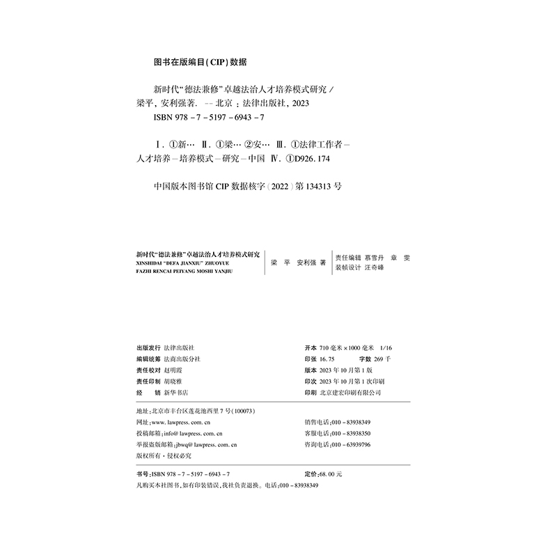 德法兼修 卓越法治人才培养模式 法律出版 2023新书 社9787519769437 安利强 新时代 梁平 正版 研究